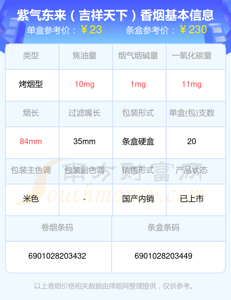 紫氣東來(雙頭鳳)參考價50.0元/包、紫氣東來(祥瑞)參考價35元/包、紫氣東來(金)參考價80元/包、紫氣東來(1928)參考價100元/包、紫氣東來(汾清香)參考價50元/包、紫氣東來(六合同春)參考價25元/包、紫氣東來(吉祥天下)參考價23元/包等。