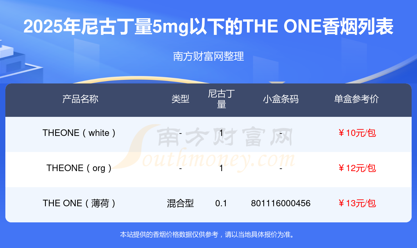 尼古丁量5mg以下的THE ONE香煙有哪些?擇煙網(wǎng)為大家整理盤點(diǎn),分別有: