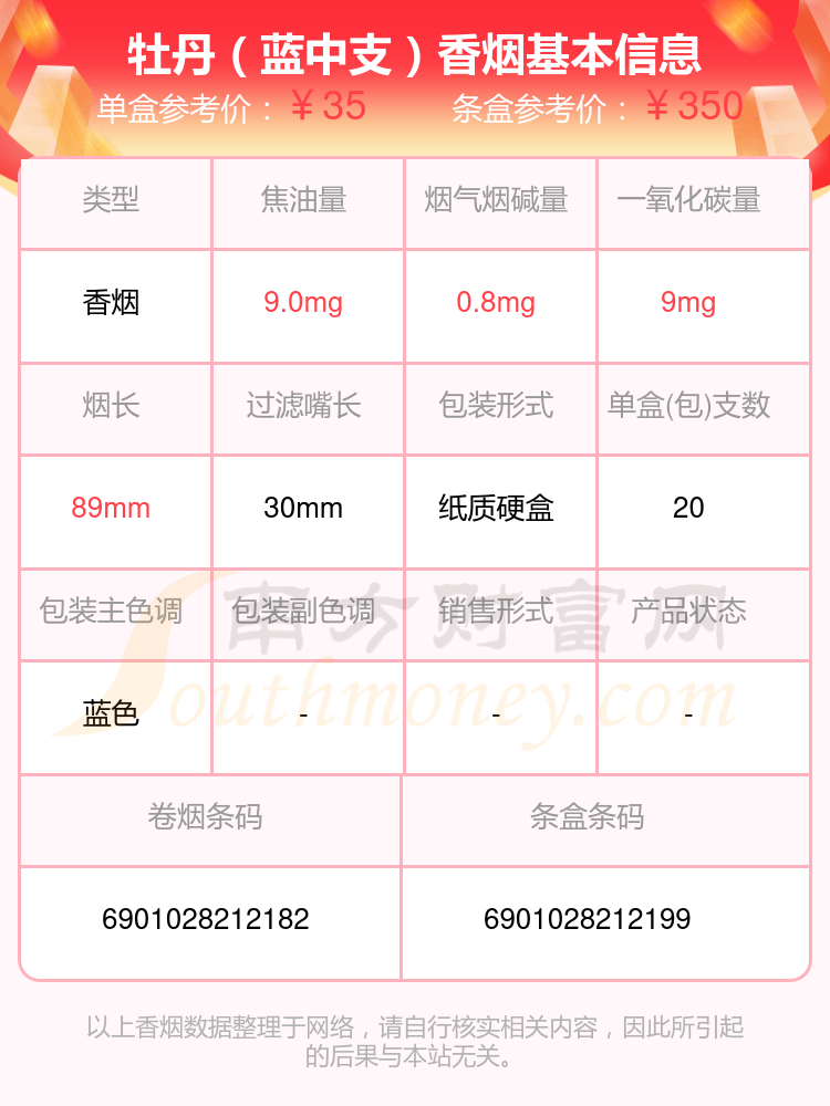 煙堿量低于1mg的牡丹香煙有哪些?擇煙網(wǎng)為大家整理盤點(diǎn),分別有:牡丹(硬白)、牡丹(軟出口)、牡丹(硬真藍(lán))、牡丹(硬)、牡丹(軟)、牡丹(硬10mg)、牡丹(金短支)、牡丹(紅中支)、牡丹(藍(lán)中支)、牡丹(軟藍(lán))等,具體價(jià)格如下: