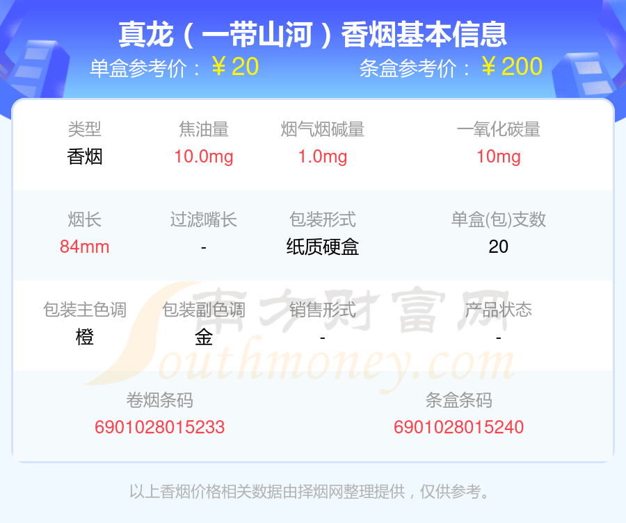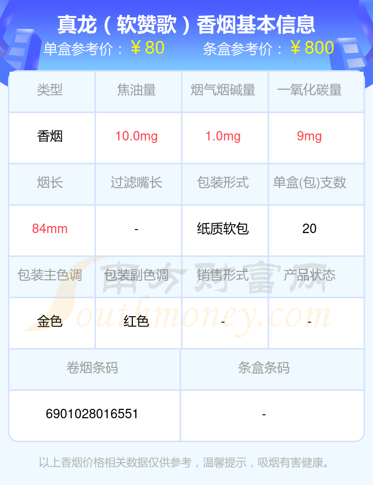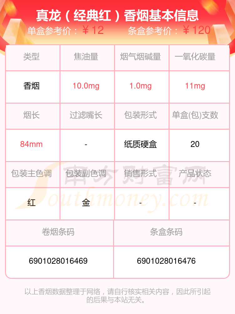 煙堿低于1mg的真龍香煙有哪些?擇煙網(wǎng)為大家整理盤點(diǎn),分別有:真龍(中支凌云)、真龍(前程似錦)、真龍(經(jīng)典紅)、真龍(一帶山河)、真龍(軟嬌子)、真龍(硬贊歌)、真龍(巴馬天和)、真龍(軟贊歌)、真龍(硬凌云)、真龍(恭囍)等,具體價(jià)格如下: