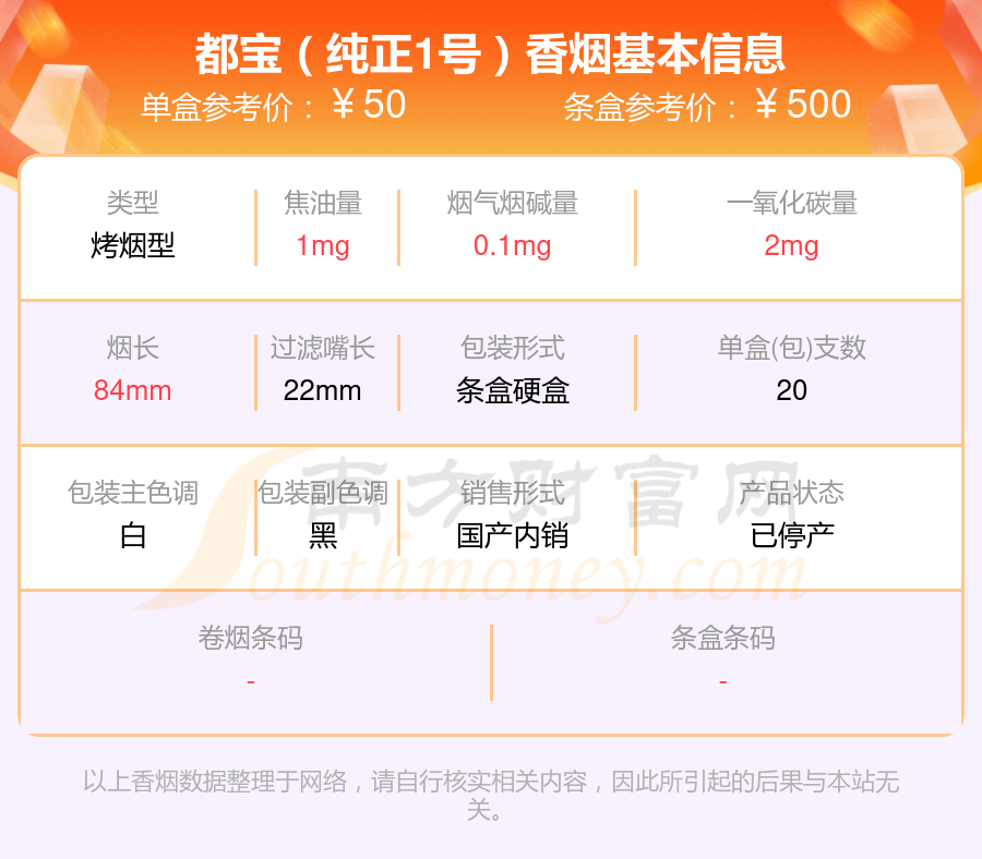 都寶香煙焦油量5mg以下的煙有都寶(3mg)、都寶(純正1號(hào))等,詳細(xì)價(jià)格如下: