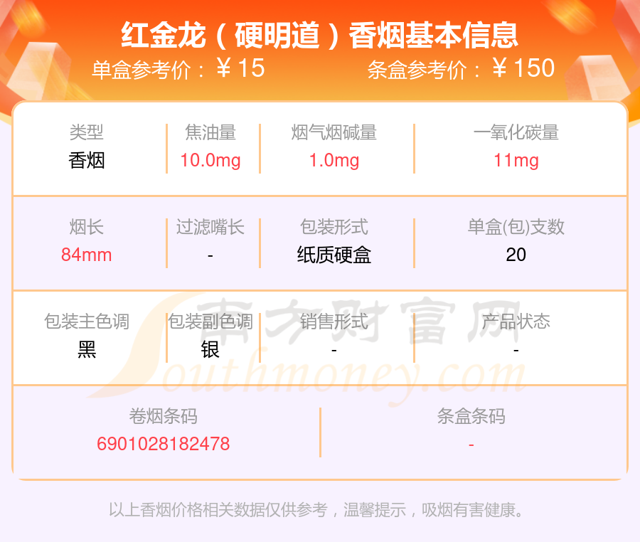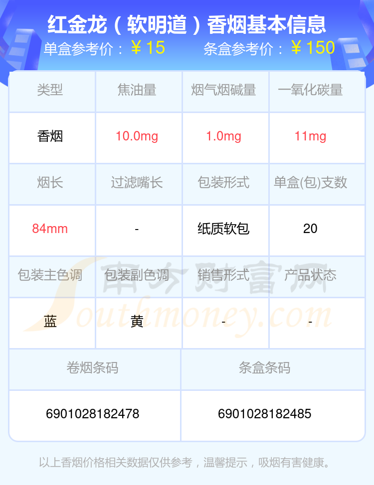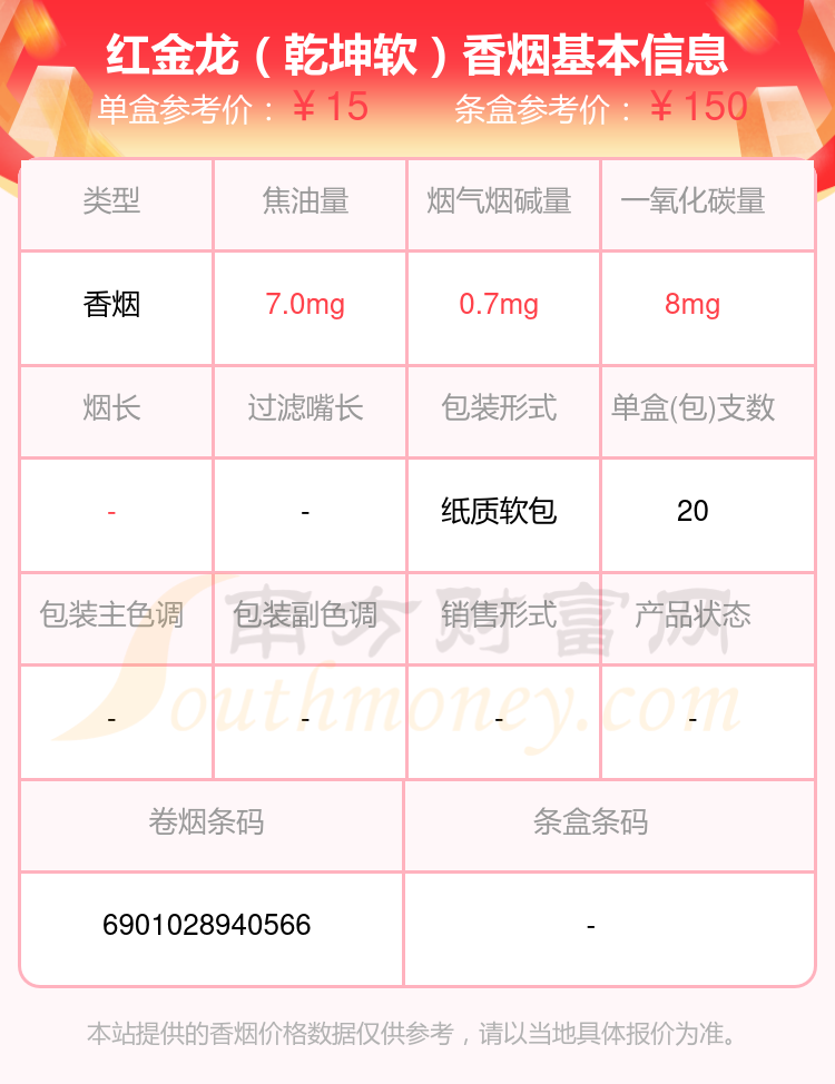 10至50元左右的紅金龍香煙有哪些?擇煙網(wǎng)為大家整理盤點,分別有:紅金龍(新版)、紅金龍(曉樓8mg)、紅金龍(硬金愛你)、紅金龍(圓夢硬寬)、紅金龍(硬明道)、紅金龍(乾坤)、紅金龍(乾坤軟)、紅金龍(黃鶴樓·禧)、紅金龍(硬愛你爆珠)、紅金龍(軟明道)等,具體價格如下: