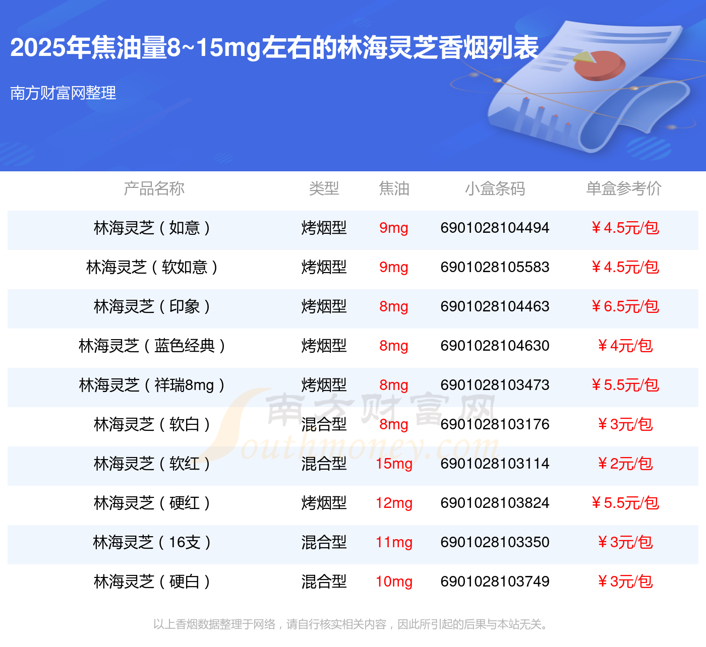 林海靈芝香煙焦油量8~15mg左右的煙有林海靈芝(如意)、林海靈芝(軟如意)、林海靈芝(印象)、林海靈芝(藍色經(jīng)典)、林海靈芝(祥瑞8mg)、林海靈芝(軟白)、林海靈芝(軟紅)、林海靈芝(硬紅)、林海靈芝(16支)、林海靈芝(硬白)等,詳細價格如下: