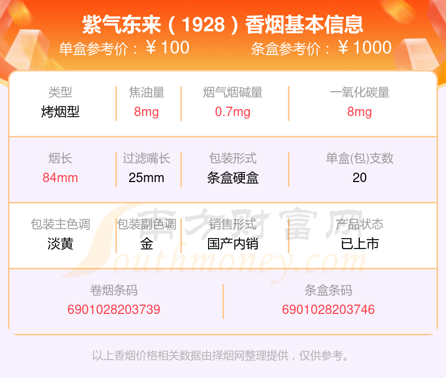 擇煙網(wǎng)為大家盤點(diǎn)了紫氣東來香煙超過80元的,分別有紫氣東來(金)、紫氣東來(1928)等,詳細(xì)價(jià)格如下: