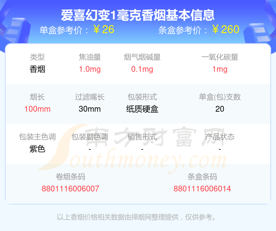 愛喜幻變1毫克香煙網(wǎng)友評分: