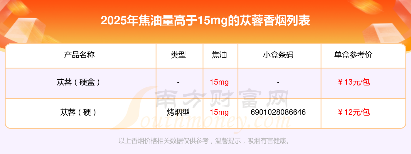 擇煙網(wǎng)為大家盤點了焦油量高于15mg的蓯蓉香煙,分別有蓯蓉(硬盒)、蓯蓉(硬)等,具體價格如下: