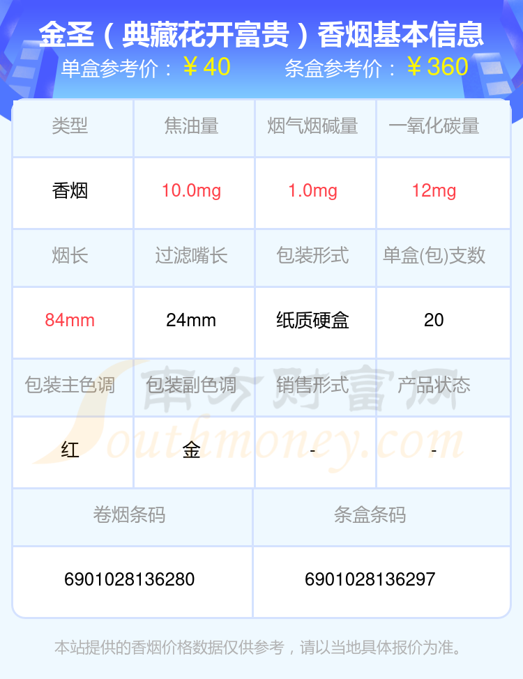 金圣(典藏花開富貴)單盒參考價(jià):40元