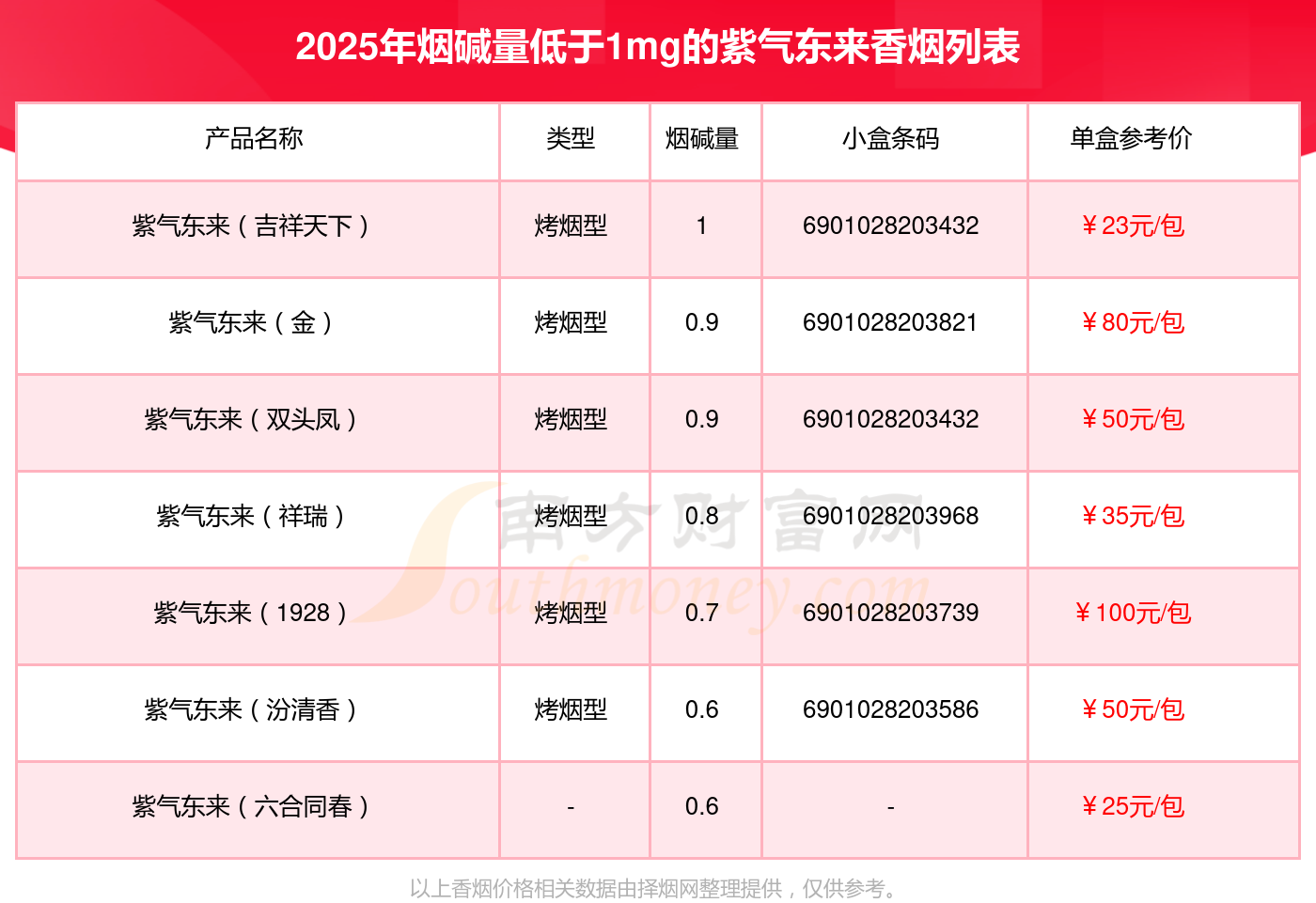 擇煙網(wǎng)為大家盤點(diǎn)了煙堿量低于1mg的紫氣東來香煙,有紫氣東來(吉祥天下)、紫氣東來(金)、紫氣東來(雙頭鳳)、紫氣東來(祥瑞)、紫氣東來(1928)、紫氣東來(汾清香)、紫氣東來(六合同春)等,詳細(xì)價格如下:
