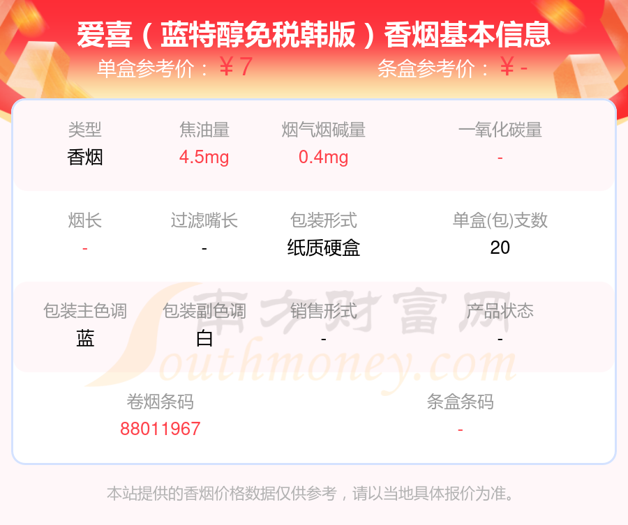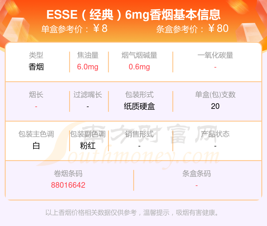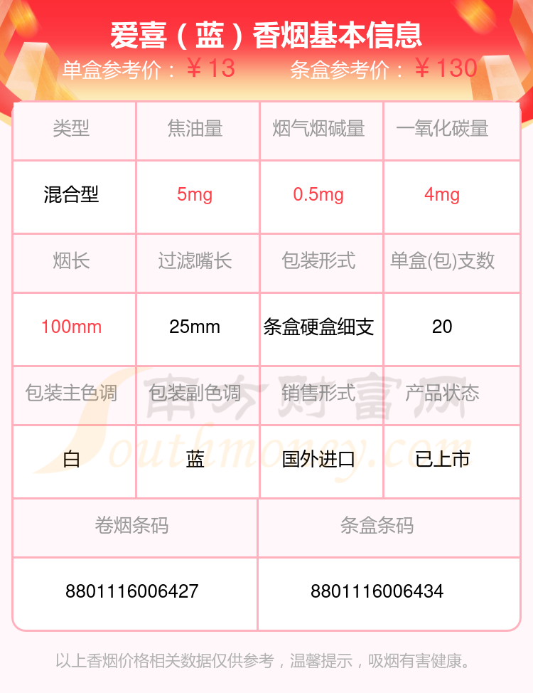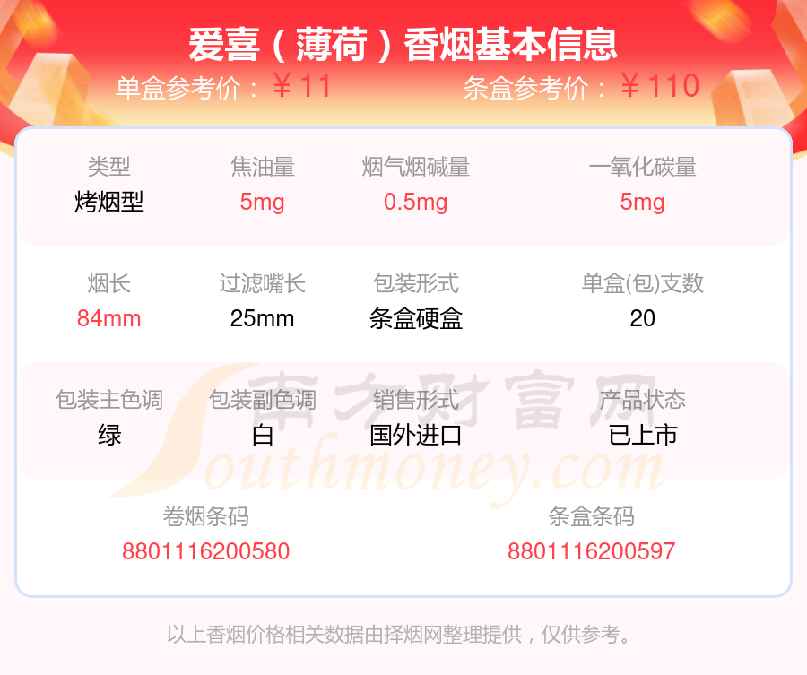 以上香煙數(shù)據(jù)整理于網(wǎng)絡(luò),請(qǐng)自行核實(shí)相關(guān)內(nèi)容,因此所引起的后果與本站無(wú)關(guān)。