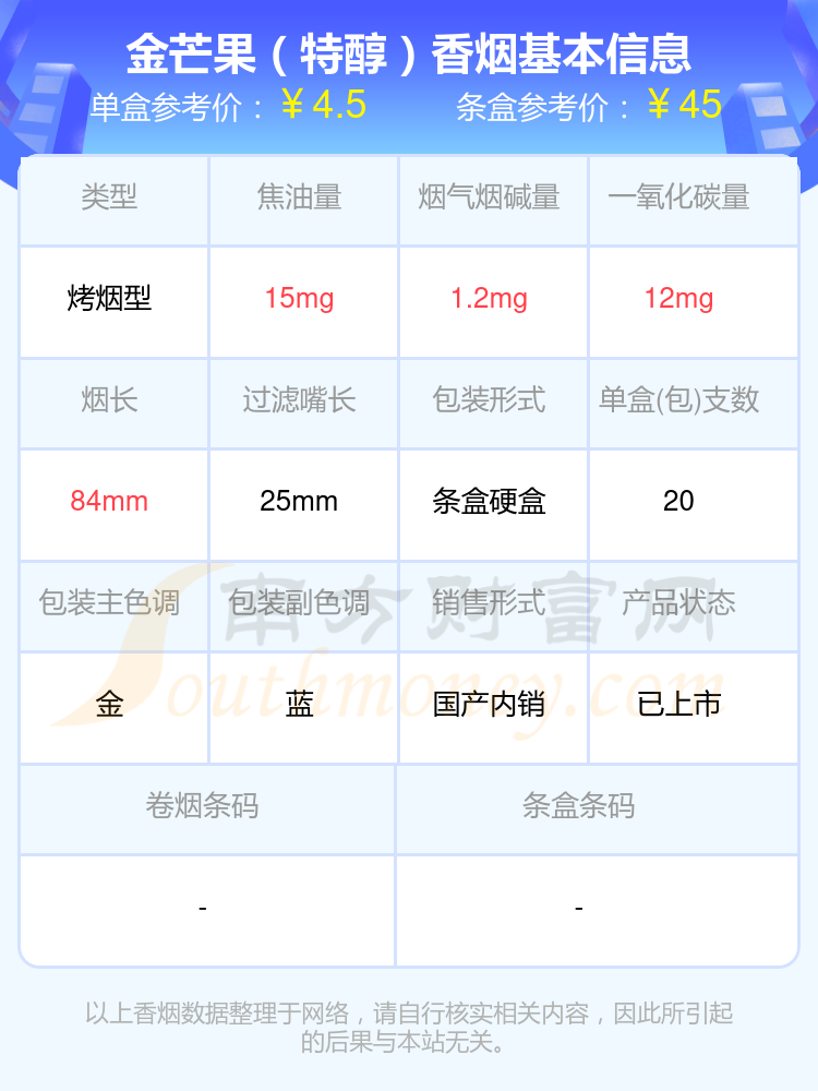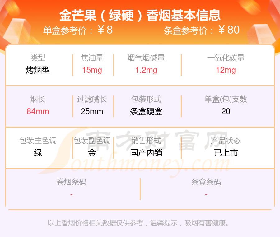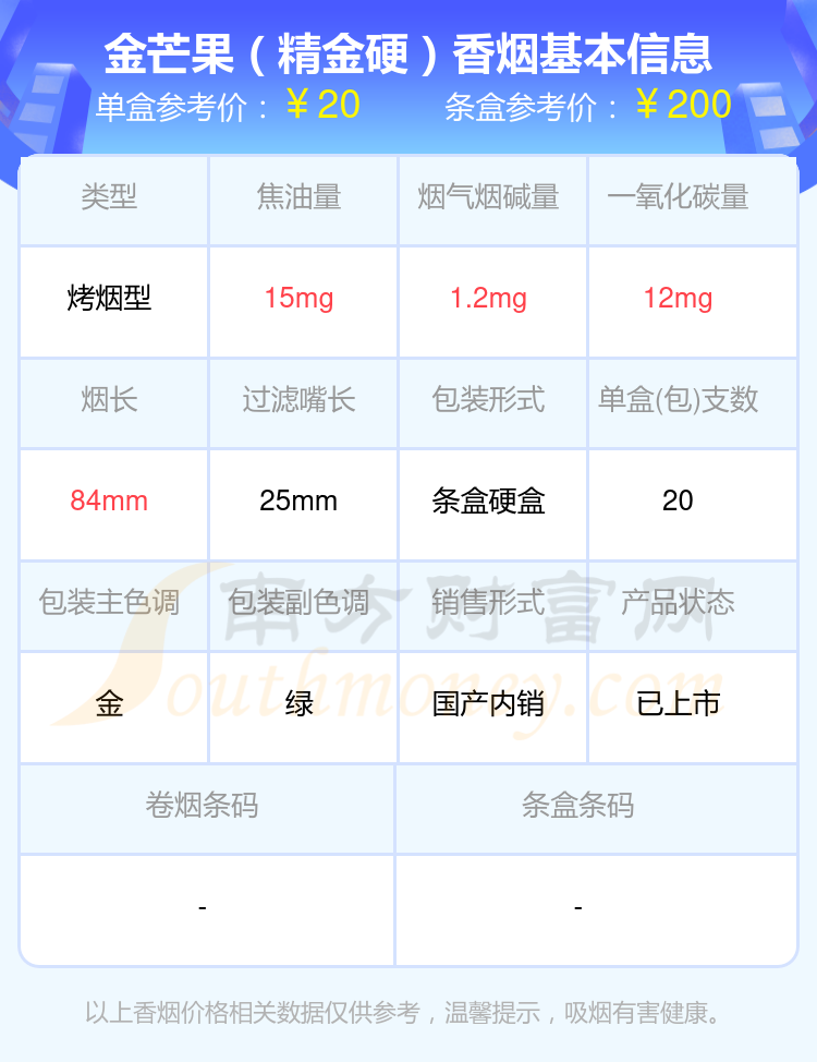 尼古丁低于4mg的芒果香煙有哪些?擇煙網(wǎng)為大家整理盤(pán)點(diǎn),有金芒果(銀硬)、金芒果(嘉年華)、金芒果(紫硬)、金芒果(特醇)、金芒果(綠硬)、金芒果(精金硬)、金芒果(盛世金典)等,詳細(xì)價(jià)格如下: