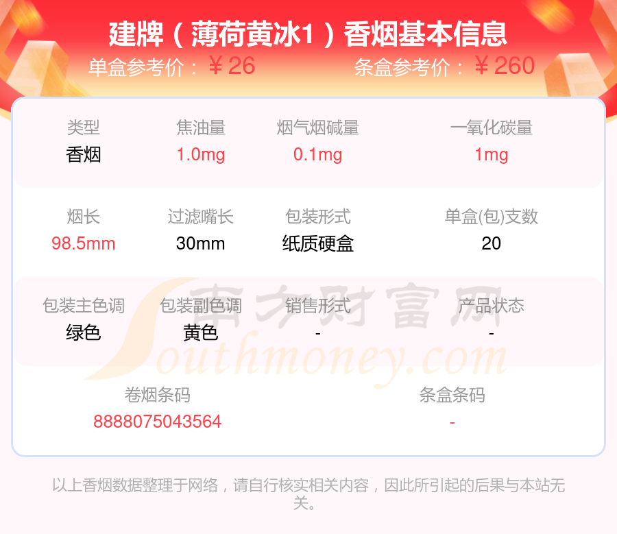 以上香煙數(shù)據(jù)整理于網(wǎng)絡(luò),請(qǐng)自行核實(shí)相關(guān)內(nèi)容,因此所引起的后果與本站無(wú)關(guān)。