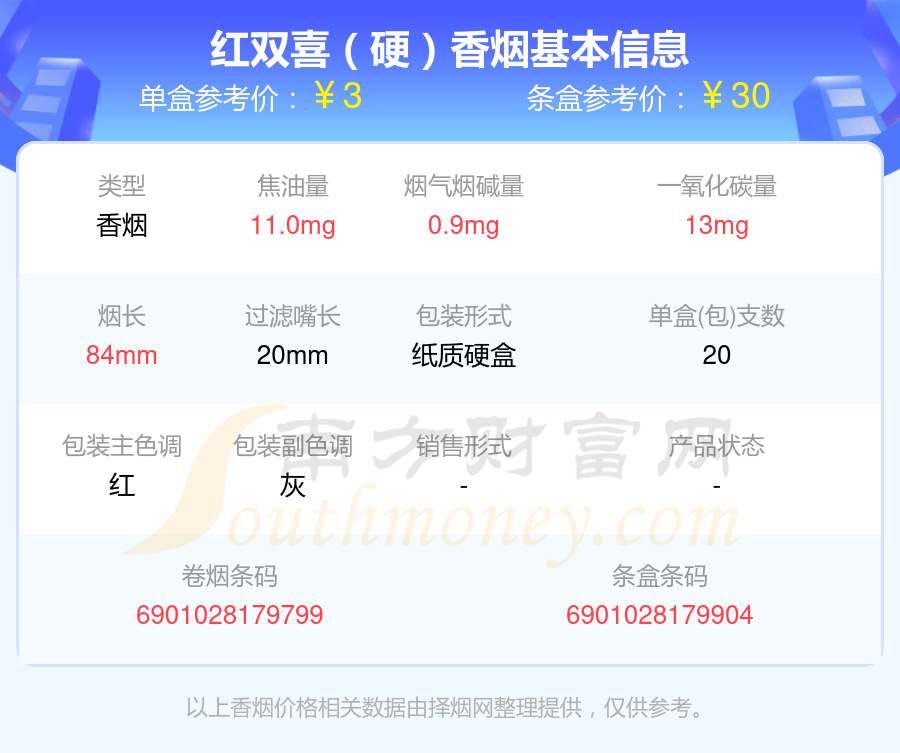 擇煙網(wǎng)為大家盤點(diǎn)了紅雙喜(鄂)香煙焦油量8-15mg左右的,分別有紅雙喜(硬)、紅雙喜(硬黃)等,具體價(jià)格如下: