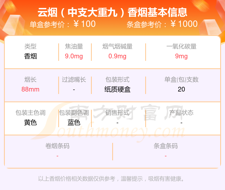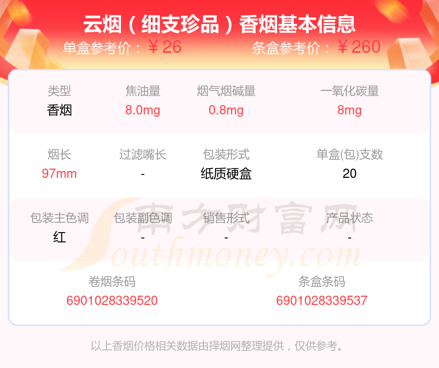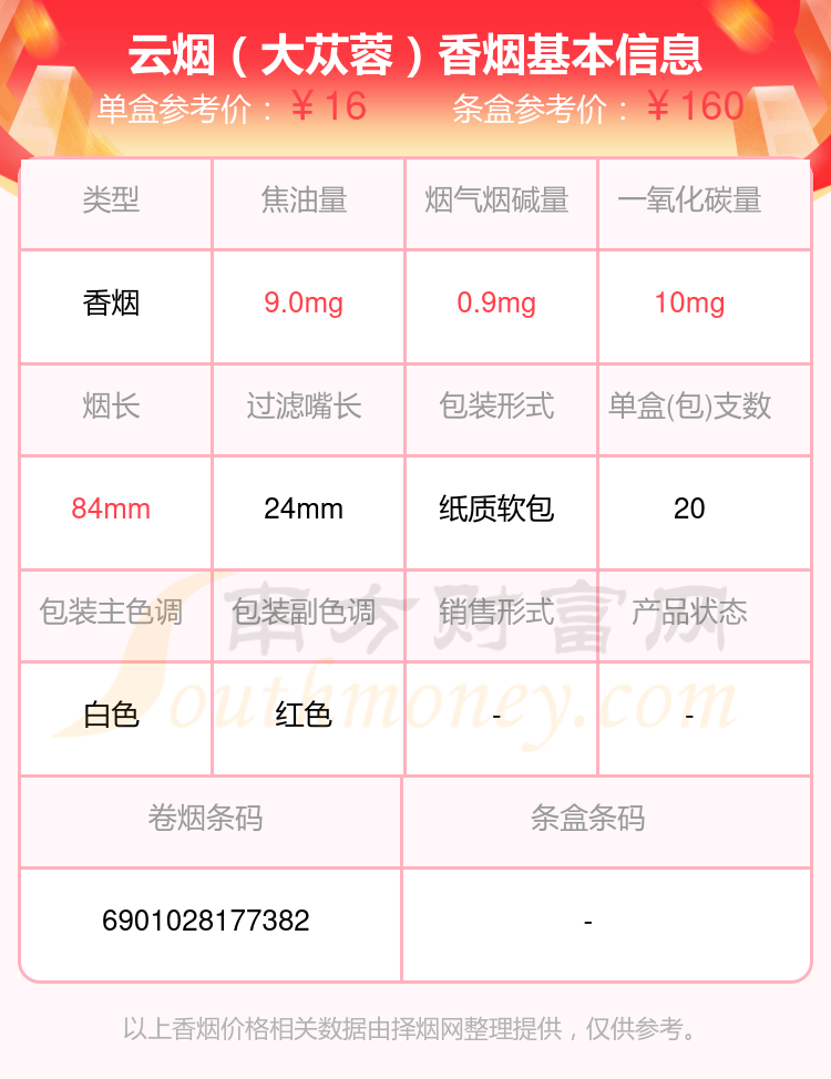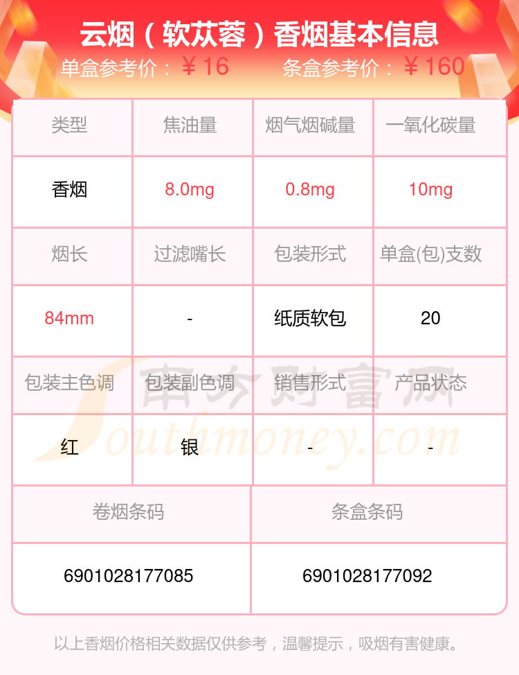 以上香煙數(shù)據(jù)整理于網(wǎng)絡(luò),請自行核實相關(guān)內(nèi)容,因此所引起的后果與本站無關(guān)。