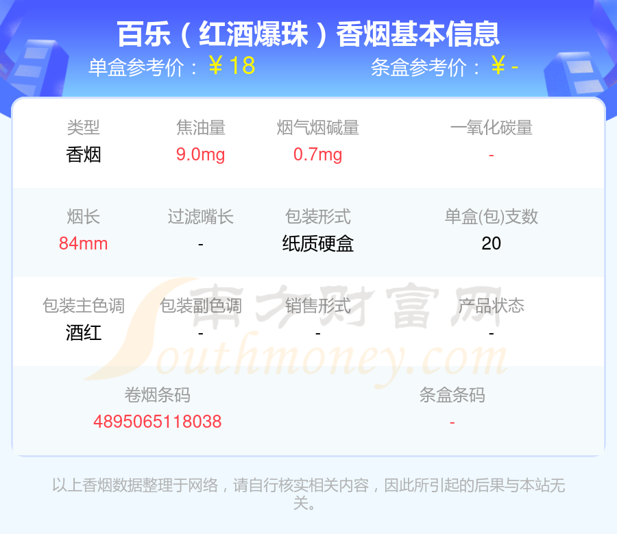 以上香煙數(shù)據(jù)整理于網(wǎng)絡(luò),請自行核實相關(guān)內(nèi)容,因此所引起的后果與本站無關(guān)。