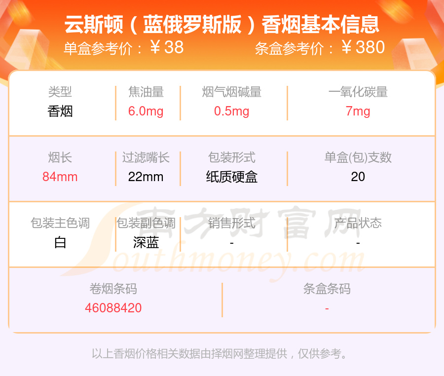 以上香煙價格相關(guān)數(shù)據(jù)由擇煙網(wǎng)整理提供,僅供參考。