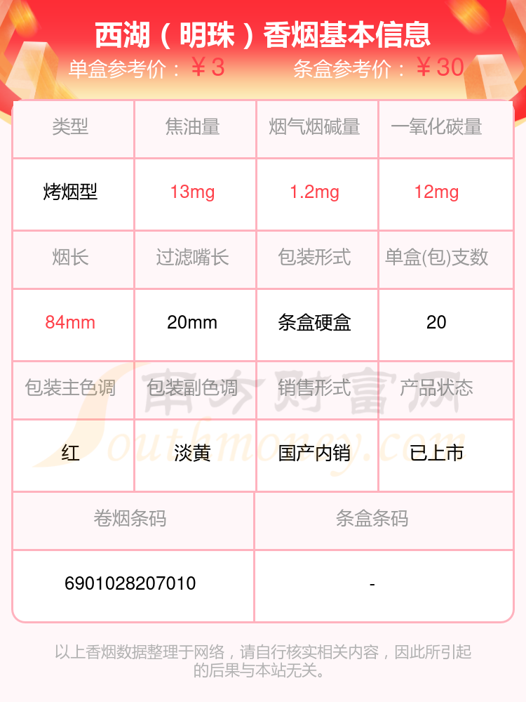 西湖香煙尼古丁低于4mg的煙有哪些?擇煙網(wǎng)為大家整理提供,分別有:西湖(明珠)、西湖(紅)、西湖(軟綠)等,具體價(jià)格如下: