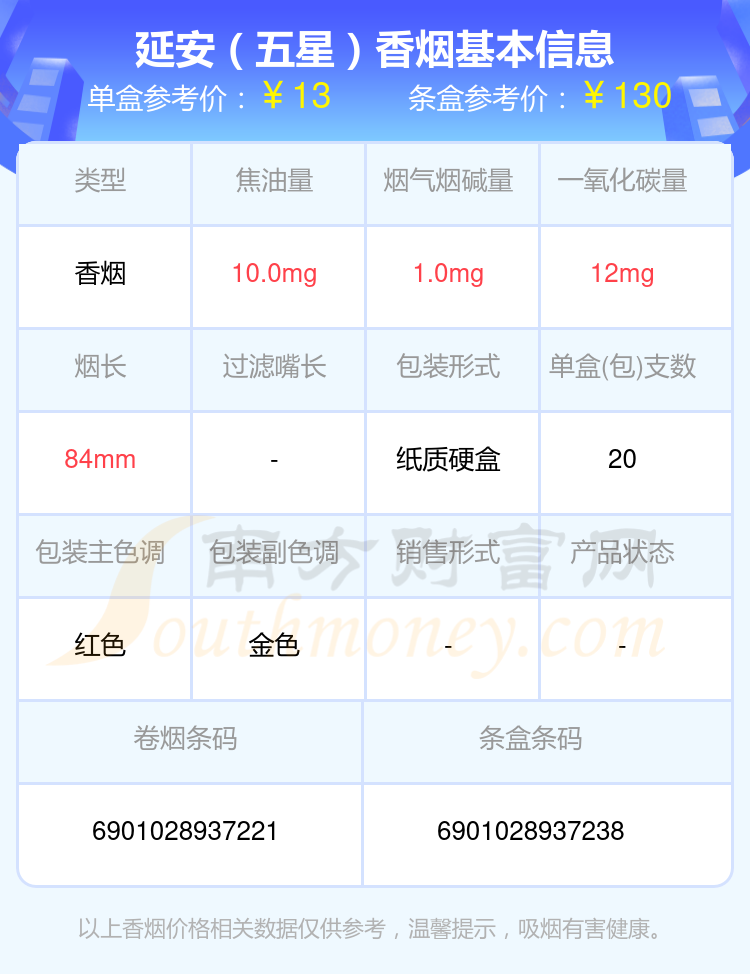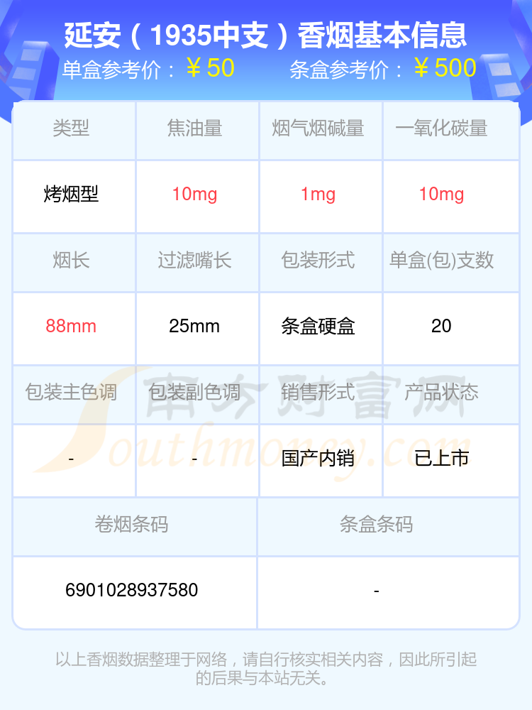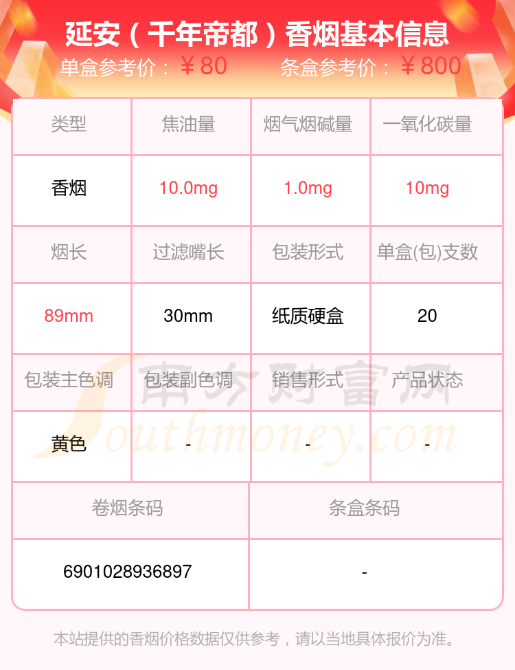 延安香煙尼古丁量1mg以下的煙分別有延安(千年帝都)參考價(jià)80.0元/包、延安(特醇)參考價(jià)10.0元/包、延安(1935)參考價(jià)50.0元/包、延安(金)參考價(jià)14.0元/包、延安(紅韻)參考價(jià)26.0元/包、延安(五星)參考價(jià)13.0元/包、延安(世紀(jì)經(jīng)典)參考價(jià)23.0元/包、延安(紅色記憶)參考價(jià)45.0元/包、延安(中支1935)參考價(jià)50元/包、延安(1935中支)參考價(jià)50元/包等。