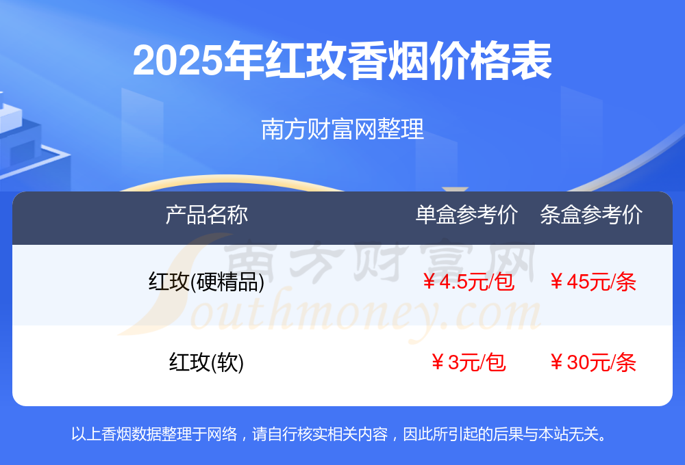 2025年紅玫香煙紅玫(硬精品)、紅玫(軟)等最新價格如下:紅玫(硬精品)參考價45.0元/條、紅玫(軟)參考價30.0元/條。