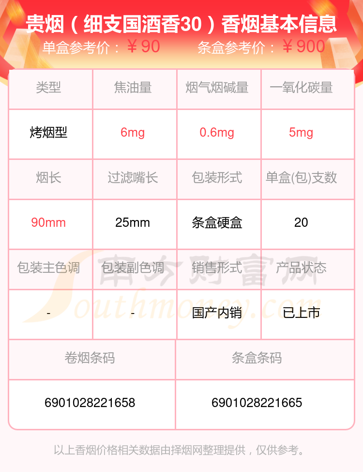 1、貴煙(細支國酒香30)