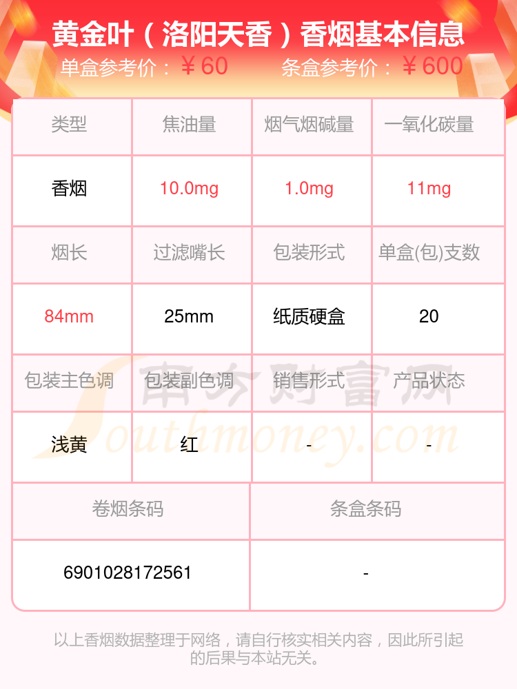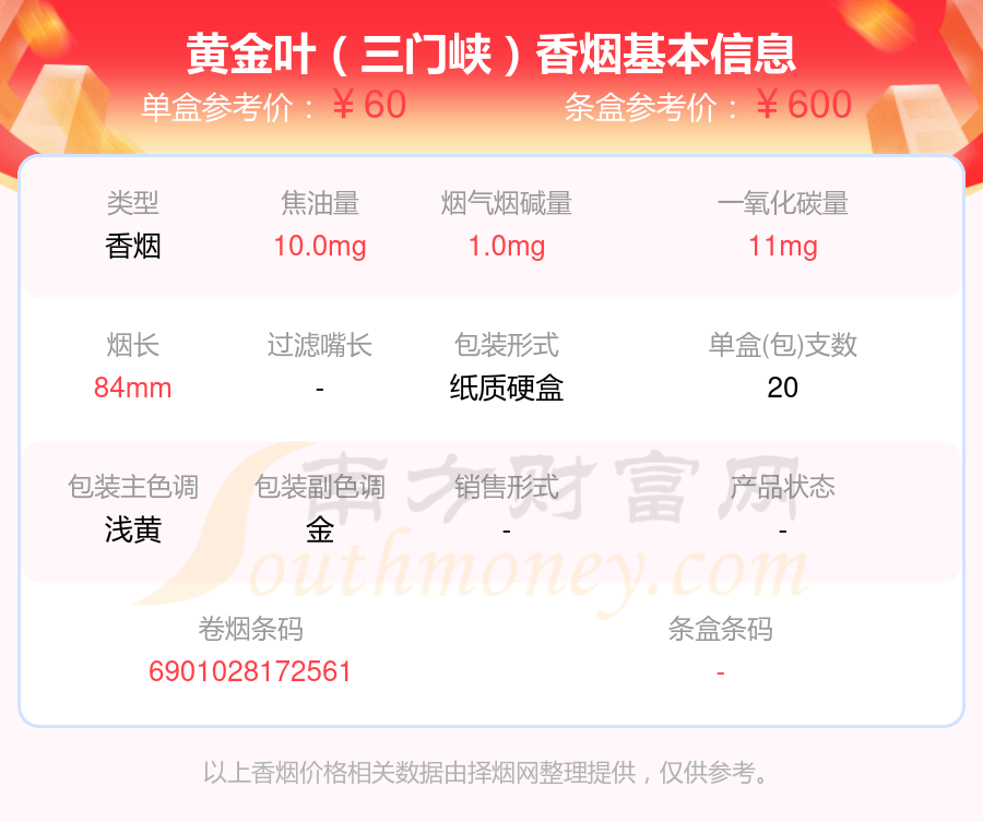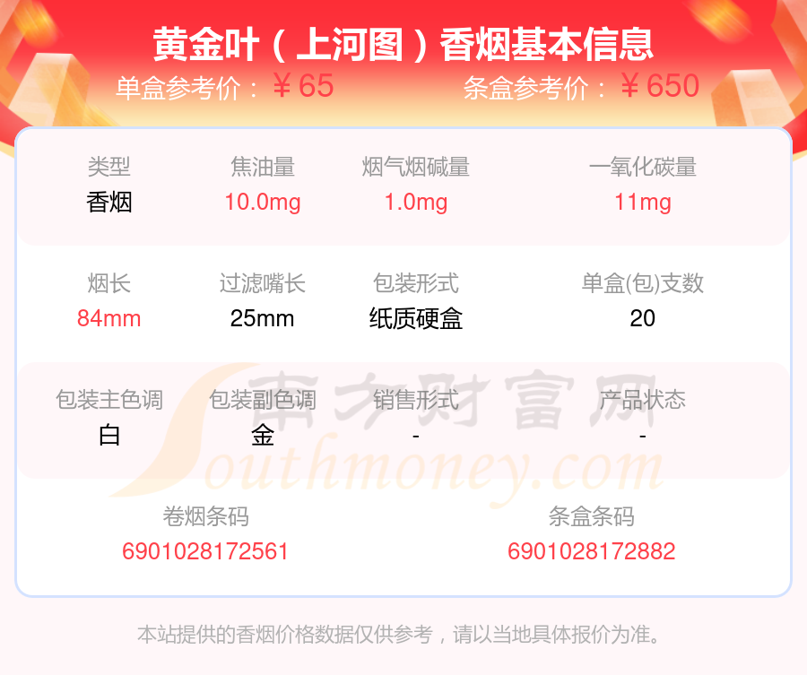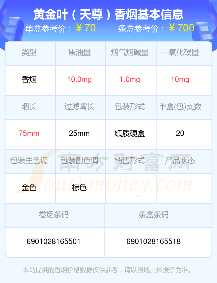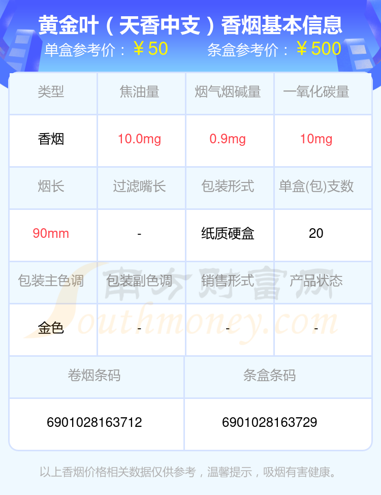 黃金葉香煙三十元至七十元的煙有黃金葉(軟黃金)、黃金葉(天尊)、黃金葉(上河圖)、黃金葉(云臺(tái)山)、黃金葉(三門峽)、黃金葉(洛陽(yáng)天香)、黃金葉(洛陽(yáng)牡丹細(xì)支煙)、黃金葉(天香細(xì)支)、黃金葉(茗仕之風(fēng))、黃金葉(天香中支)等,具體價(jià)格如下: