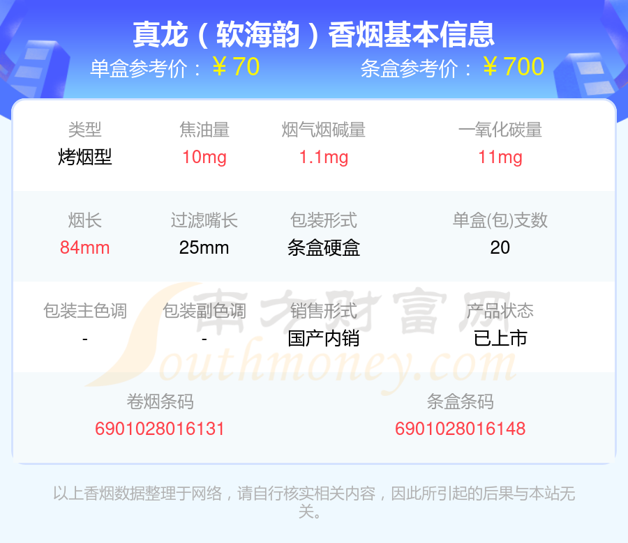 以上香煙數(shù)據(jù)整理于網(wǎng)絡(luò),請自行核實(shí)相關(guān)內(nèi)容,因此所引起的后果與本站無關(guān)。