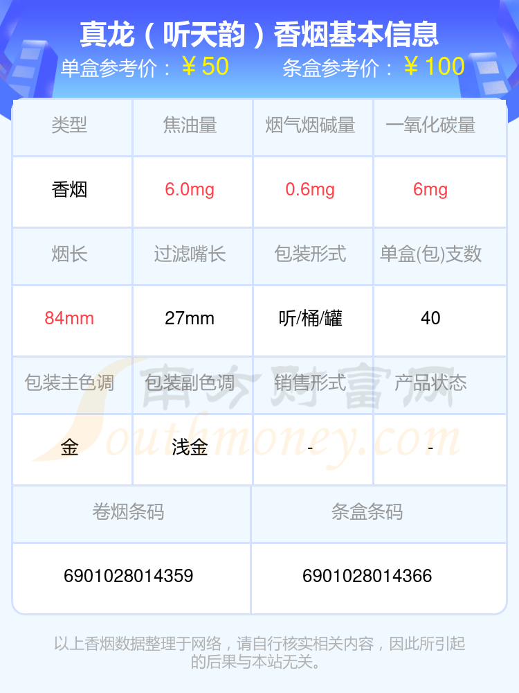 擇煙網(wǎng)為大家盤點(diǎn)了五十元到七十元左右的真龍香煙,分別有真龍(軟海韻)、真龍(巴馬天和)、真龍(禪韻)、真龍(海韻細(xì)支)、真龍(神韻)、真龍(聽天韻)、真龍(海韻)等,具體價(jià)格如下:
