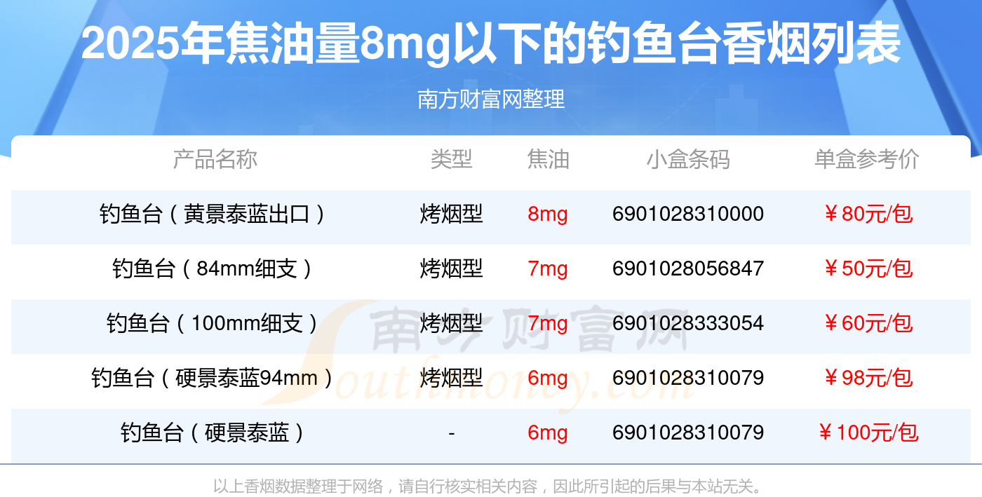 焦油量8mg以下的釣魚臺香煙有哪些?擇煙網(wǎng)為大家整理盤點,分別有: