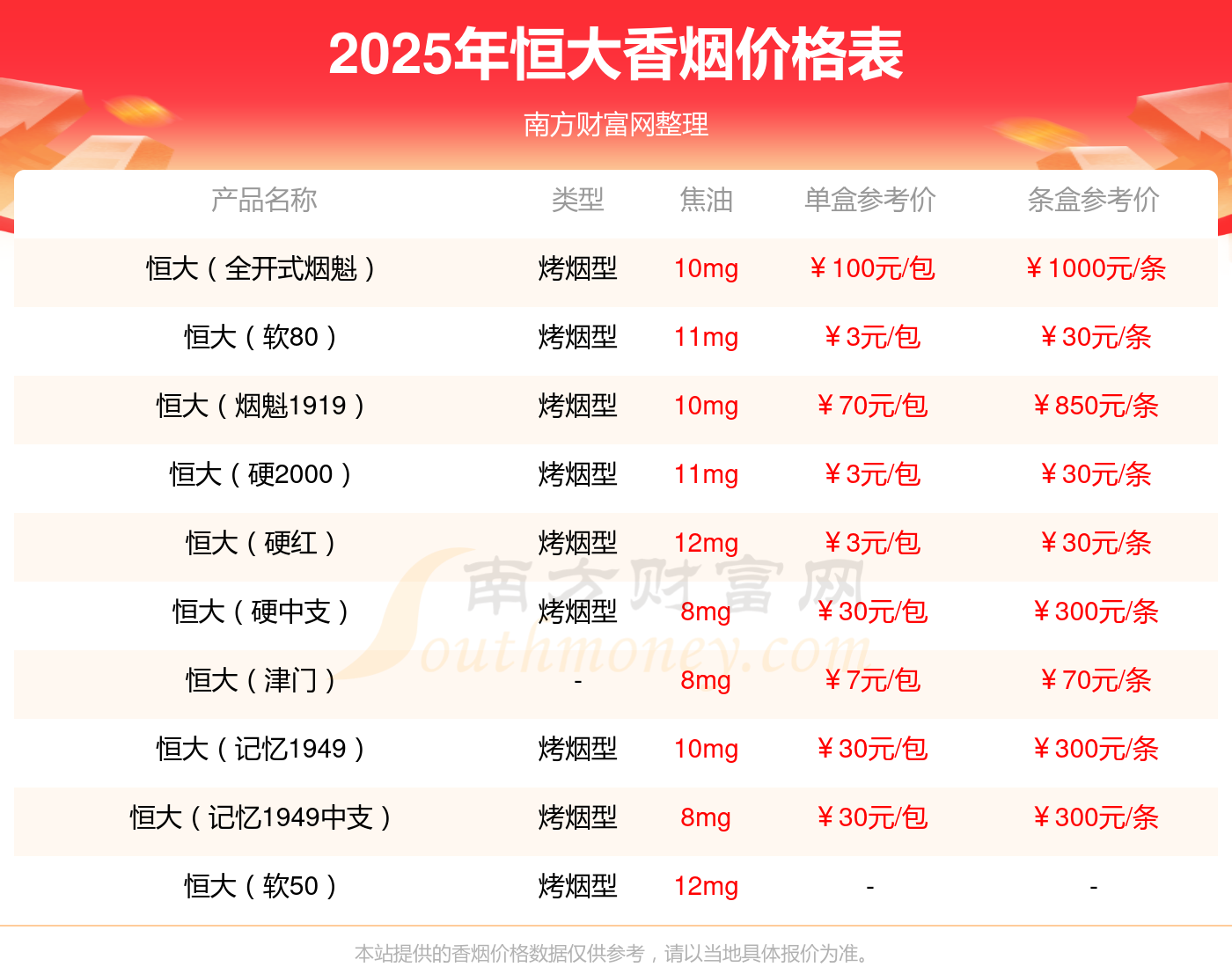 恒大(煙魁1949中支)單盒參考價(jià):65元