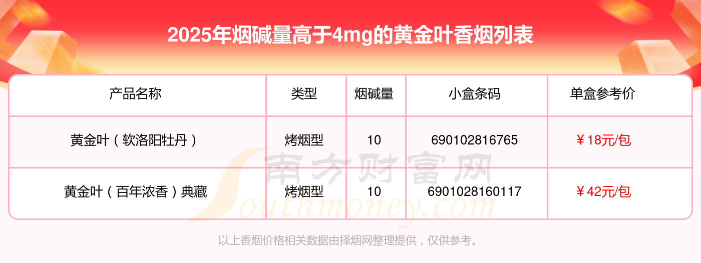 煙堿量高于4mg的黃金葉香煙有哪些?擇煙網(wǎng)為大家整理盤點,分別有: