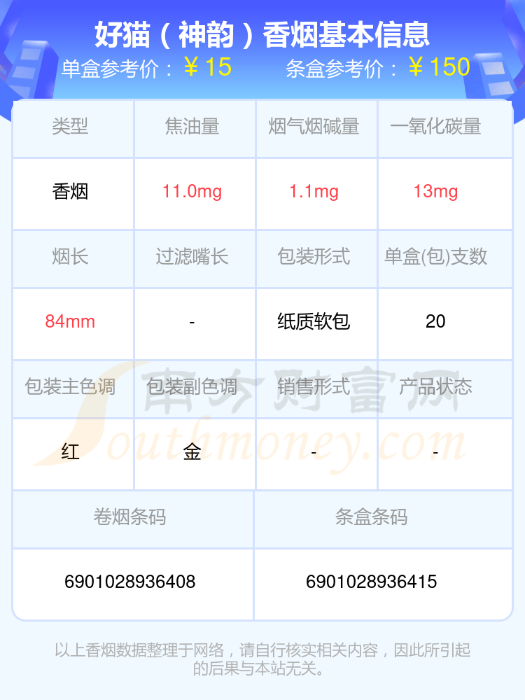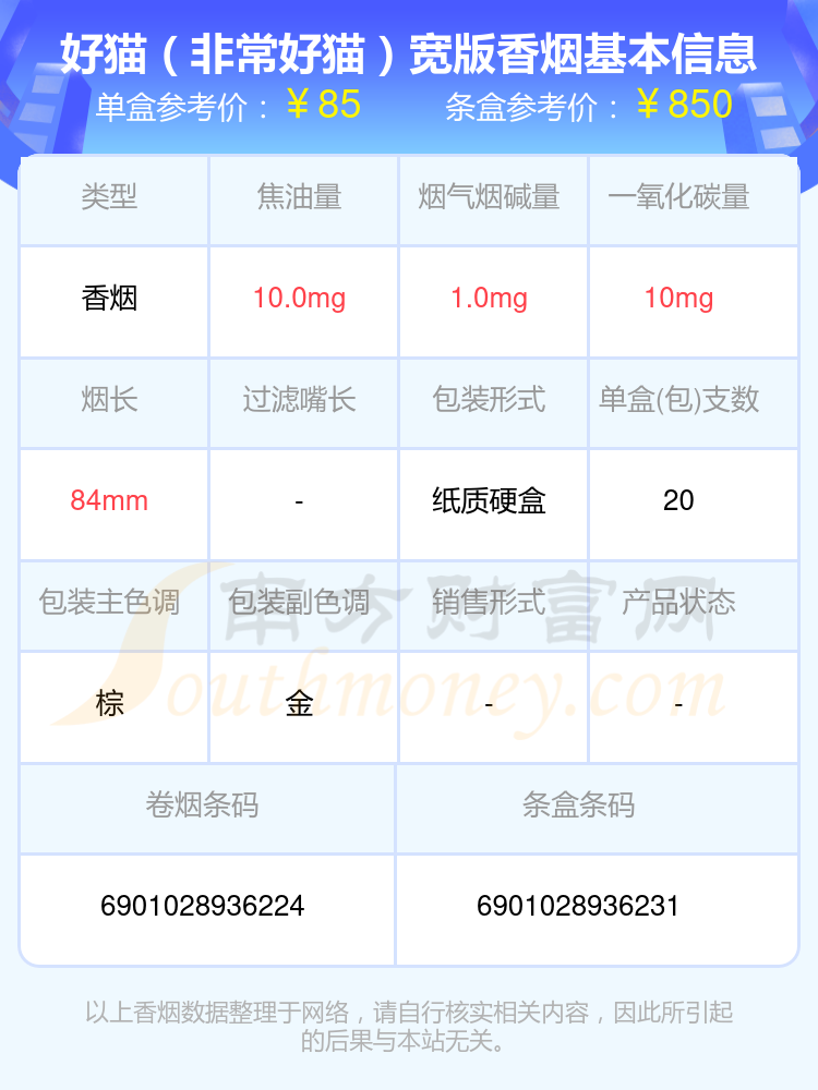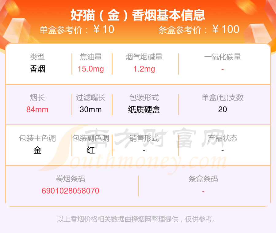 尼古丁1mg-2mg的好貓香煙有哪些?擇煙網為大家整理盤點,分別有:好貓(金)、好貓(猴王磨砂)、好貓(炫藍)、好貓(金延安)、好貓(吉祥)、好貓(神韻)、好貓(步步高)、好貓(非常好貓)寬版、好貓(千年帝都)、好貓(招財貓1600)等,具體價格如下: