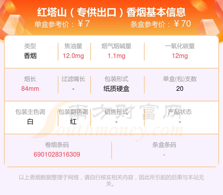 以上香煙數(shù)據(jù)整理于網(wǎng)絡(luò),請自行核實相關(guān)內(nèi)容,因此所引起的后果與本站無關(guān)。