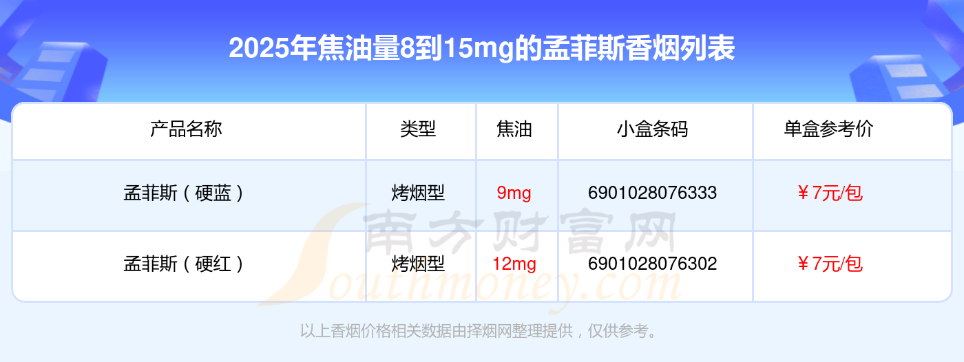 孟菲斯香煙焦油量8到15mg的有哪些?擇煙網(wǎng)為大家整理提供,分別有: