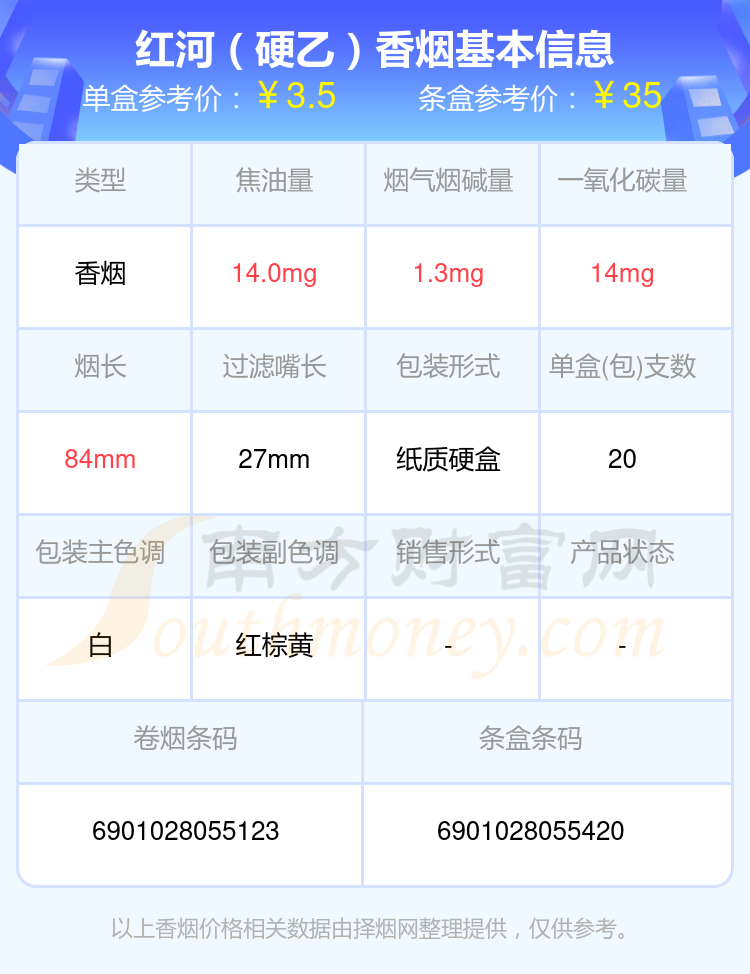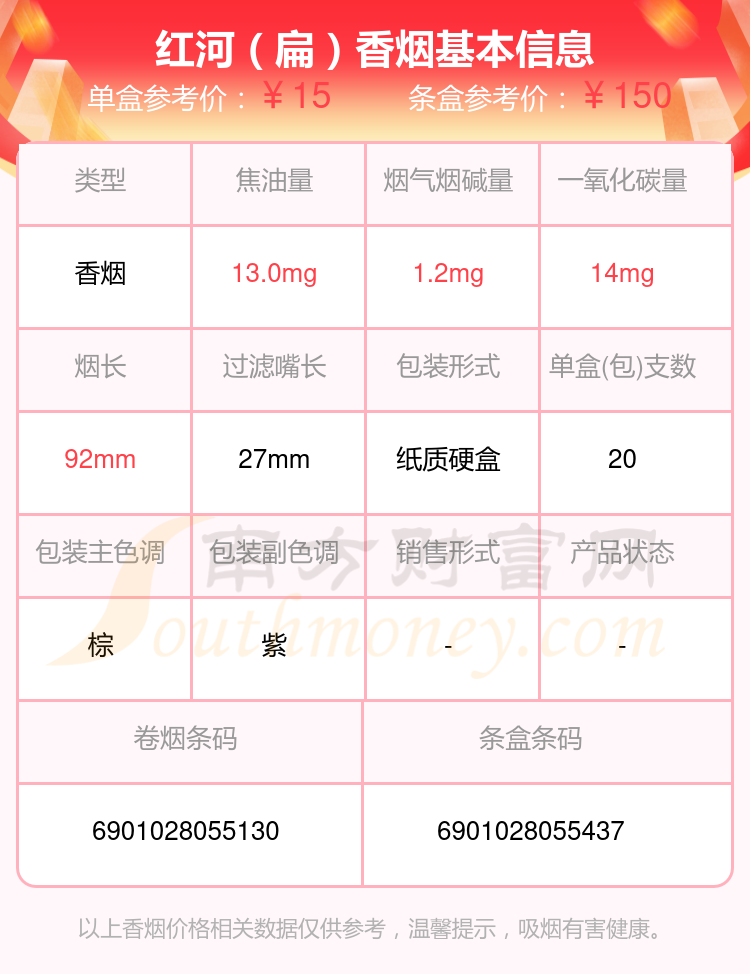 擇煙網(wǎng)為大家盤點了紅河香煙尼古丁量低于5mg的,分別有紅河(硬乙)、紅河(軟乙)、紅河(硬V6)、紅河(扁)、紅河(源)、紅河(軟奔騰)、紅河(奔騰)、紅河(硬88)、紅河(軟88)、紅河(軟V8)等,具體價格如下: