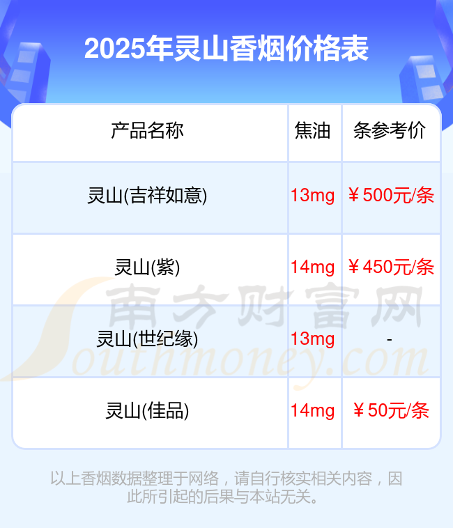 2025年靈山香煙靈山(吉祥如意)、靈山(紫)、靈山(佳品)等最新價格如下: