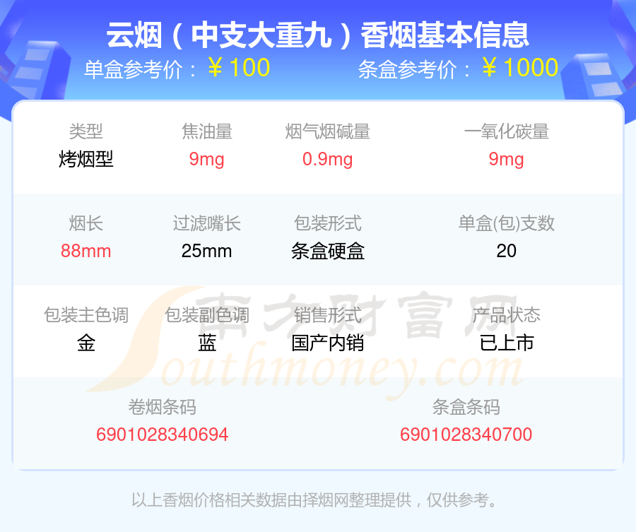 高于80元的大重九香煙有哪些?擇煙網(wǎng)為大家整理盤點,有大重九(鐵盒)、大重九煙、云煙(中支大重九)等,詳細價格如下: