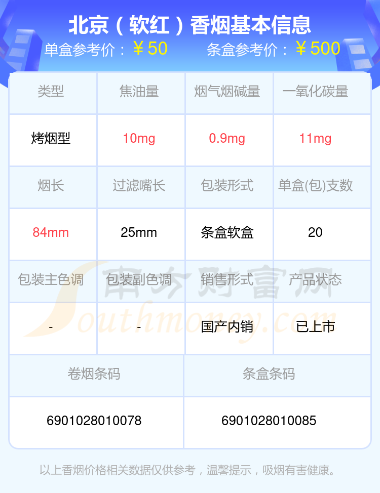 北京(軟)參考價(jià)50.0元/包、北京(紅)參考價(jià)50元/包、北京(軟紅)參考價(jià)50元/包等。