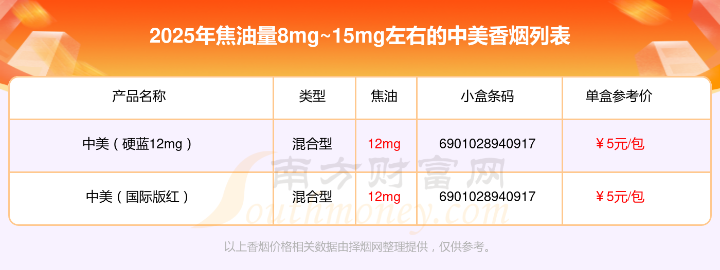 中美(硬藍(lán)12mg)參考價5元/包、中美(國際版紅)參考價5元/包等。