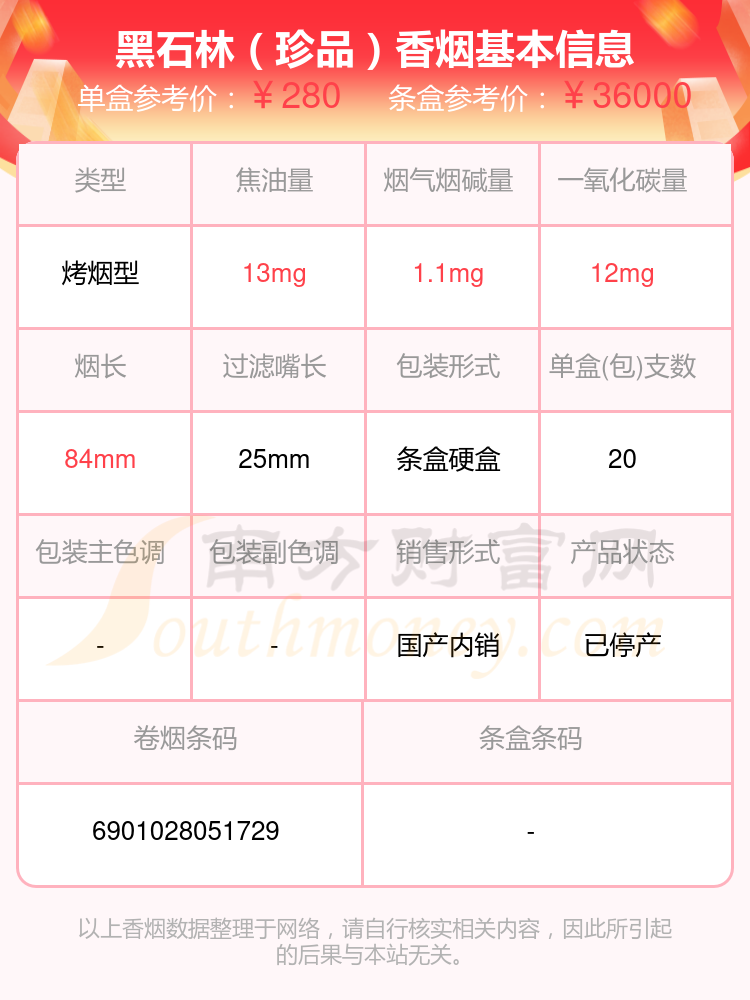 黑石林(珍品)單盒參考價(jià):280元