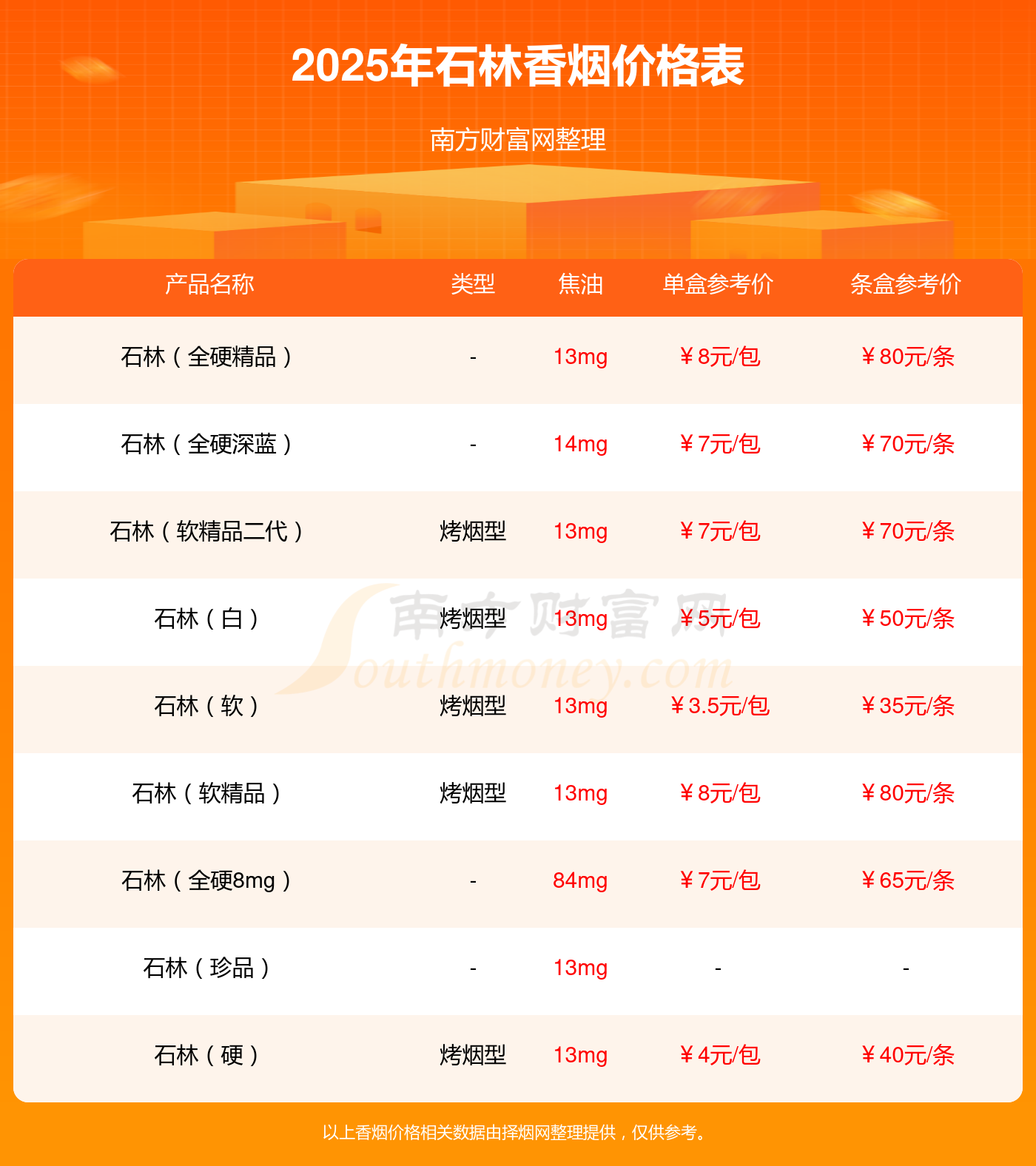 以上香煙價(jià)格相關(guān)數(shù)據(jù)僅供參考,溫馨提示,吸煙有害健康。