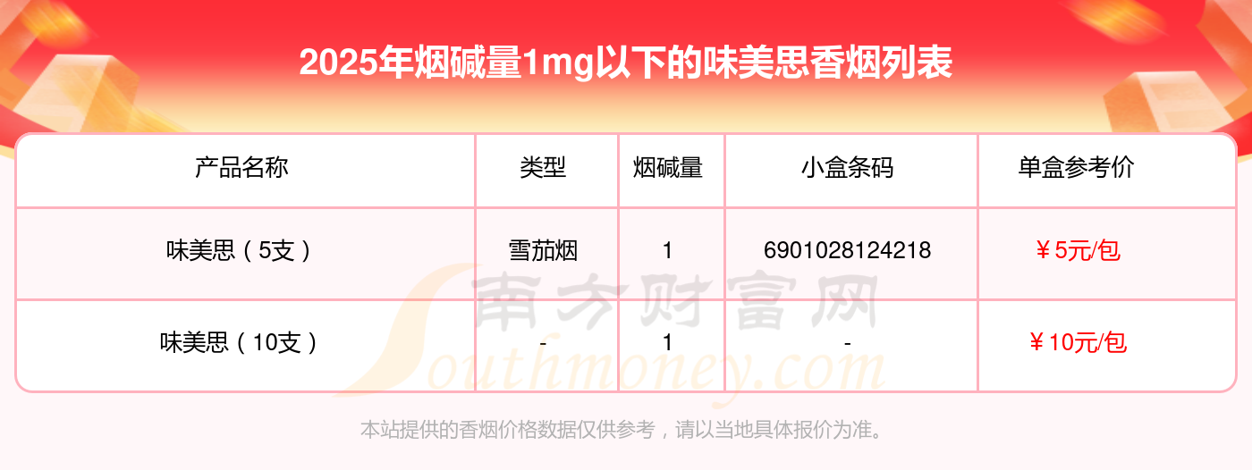 煙堿量1mg以下的味美思香煙有哪些?擇煙網(wǎng)為大家整理盤點,分別有: