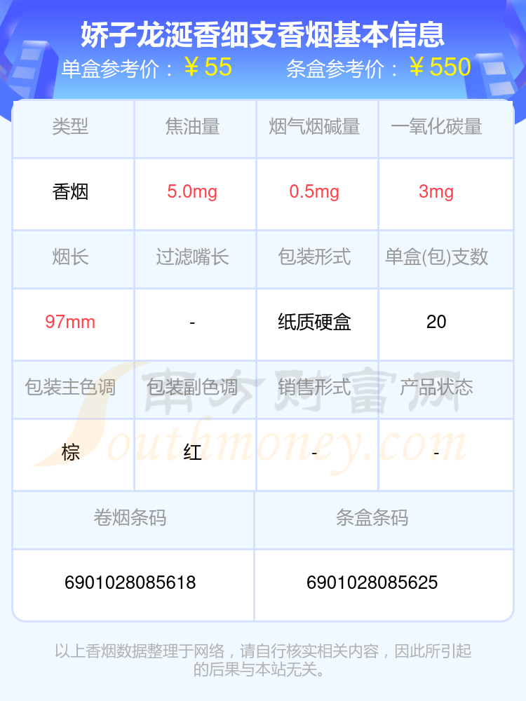 嬌子龍涎香細(xì)支單盒參考價:55元