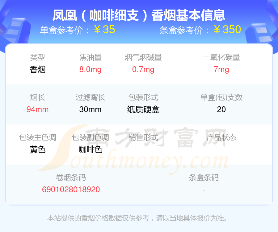 擇煙網(wǎng)為大家盤點了焦油量低于10mg的鳳凰香煙,分別有鳳凰(咖啡細支)、鳳凰(細支)等,具體價格如下: