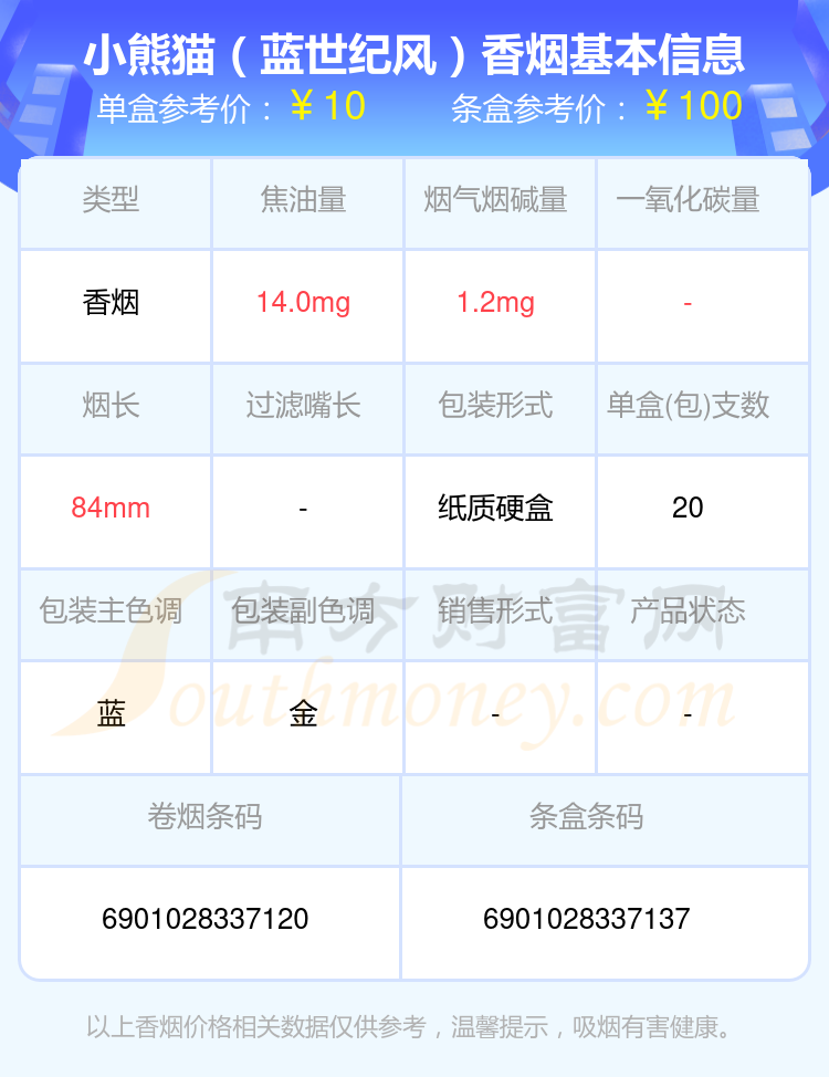 小熊貓(藍(lán)世紀(jì)風(fēng))條盒參考價(jià):100元