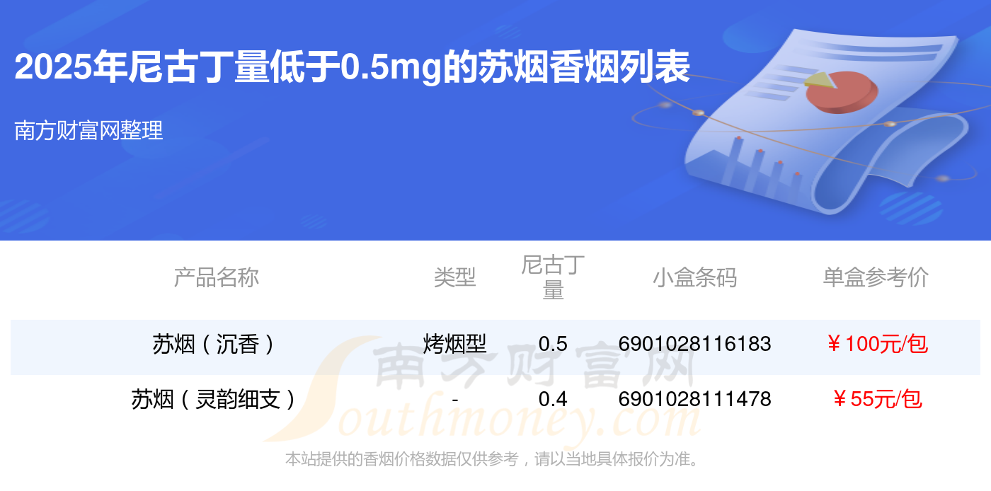 蘇煙(沉香)參考價100.0元/包、蘇煙(靈韻細支)參考價55元/包等。