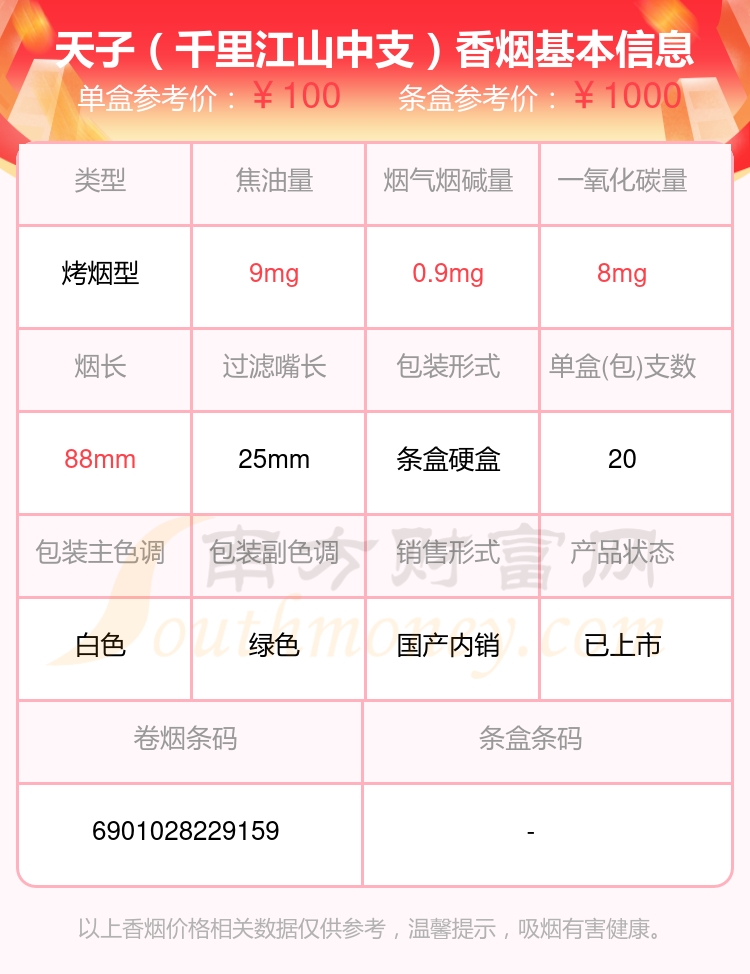 天子(千里江山中支)參考價100元/包、江山(一統(tǒng))參考價50元/包等。