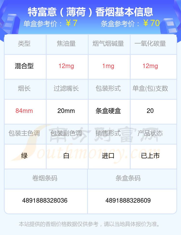 特富意香煙尼古丁量2mg以下的煙有特富意(紅精裝)、特富意(薄荷)等,具體價格如下: