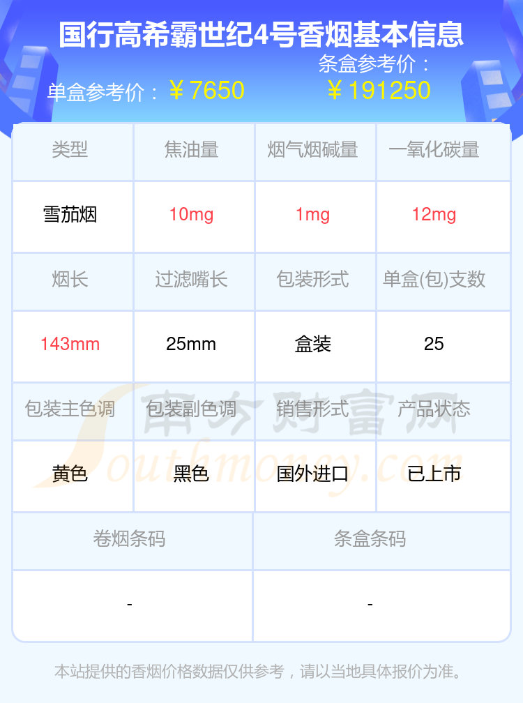 以上香煙價格相關數(shù)據(jù)由擇煙網(wǎng)整理提供,僅供參考。