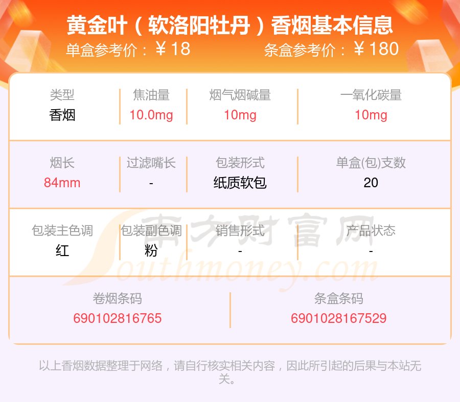 擇煙網(wǎng)為大家盤點了尼古丁3mg以上的黃金葉香煙,有黃金葉(軟洛陽牡丹)、黃金葉(百年濃香)典藏等,詳細(xì)價格如下:
