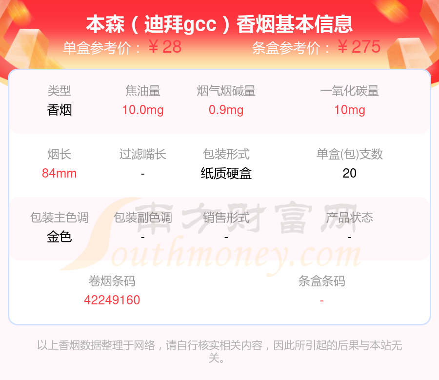 本森(南非版)參考價(jià)24.0元/包、本森(迪拜gcc)參考價(jià)28.0元/包等。