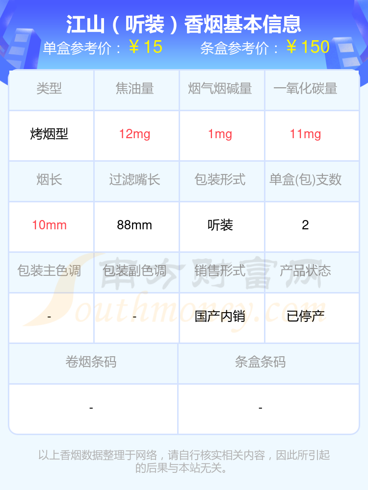 以上香煙價(jià)格相關(guān)數(shù)據(jù)僅供參考,溫馨提示,吸煙有害健康。